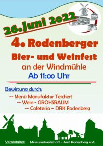 Bei der 4. Auflage vom „Bier- und Weinfest an der Mühle“ wollen wir bei – hoffentlich – schönem Wetter dort weitermachen wo wir vor der Corona-Pandemie aufhören mussten.