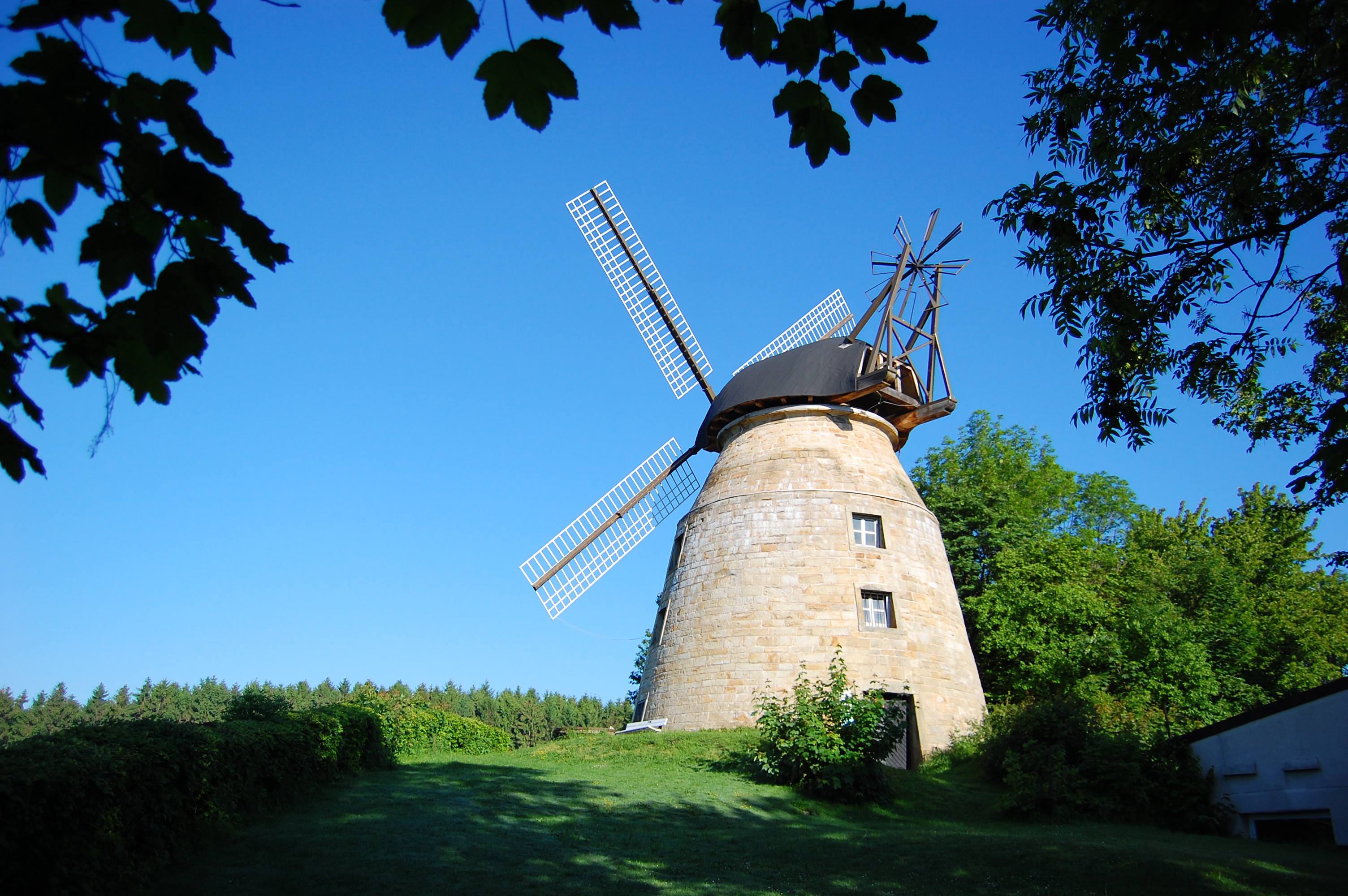 Unter unserer Führung wurde die Windmühle außen freigelegt, der westliche Eingang wieder geöffnet und die Außenanlage verändert. Hier ist ein schöner Sitzplatz entstanden, der zum Verweilen einlädt.
