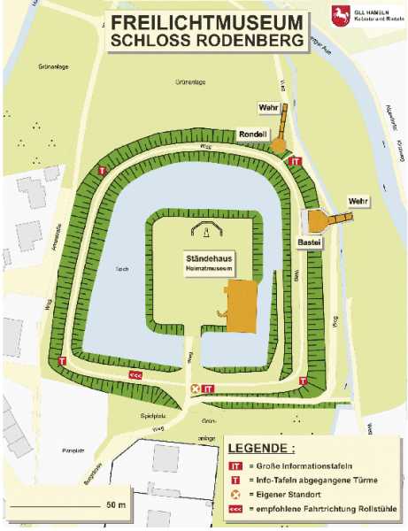 tmuseums befinden sich die erst im Jahre 2000 freigelegten Festungstürme rund um den Burgwall. Nach über vier Jahren beendete der Förderverein Schloss Rodenberg e. V. im Herbst 2004 die Ausgrabung und Teilrestaurierung der beiden Artillerietürme und ihrer Stauwehre am Schlosswall in 31552 Rodenberg im Landkreis Schaumburg.