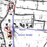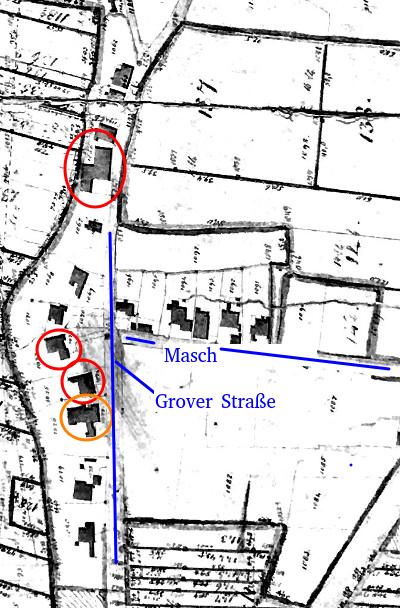 Die Gebäude auf dem unweit entfernten Grundstück Grover Str. 45 werden das gleiche Schicksal erleiden. Die erste Bebauung auf dem Grundstück sind schon auf einer Karte von 1795 zu sehen. Lange wurde von hier aus