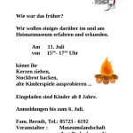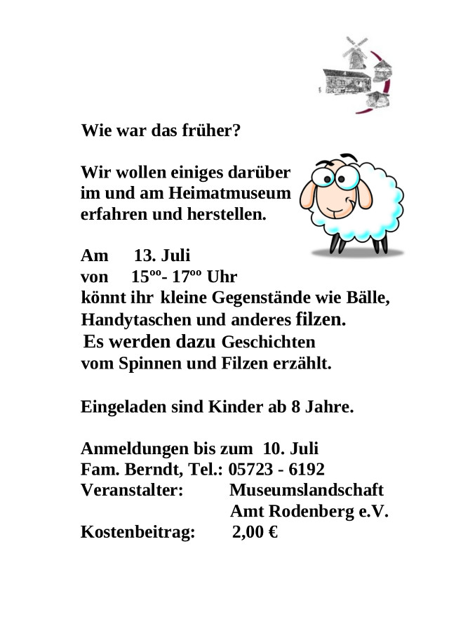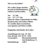 und am 13.07. wird Einblick in das alte Handwerk des „Filzens“ gegeben.