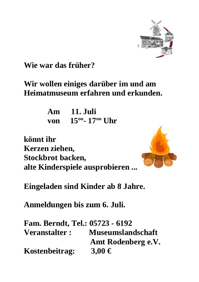 Im Rahmen der „Rodenberger Woche des Kindes“ bietet die Museumslandschaft zahlreiche attraktive Veranstaltungen an. Den Auftakt macht am Fr. den 29.06.2018 die Tour mit dem Trecker in den Deister.